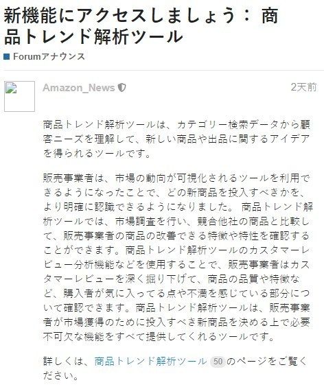同时,亚马逊日本站近日推出商品趋势分析工具。新工具有利于卖家从品类搜索数据中了解客户需求,获取新品和listing创意。借助可视化市场趋势的工具,零售商现在可以更清楚地确定要推出哪些新产品。