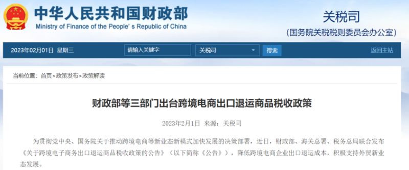 重大利好!财政部等三部门出台跨境电商出口退运商品税收新政