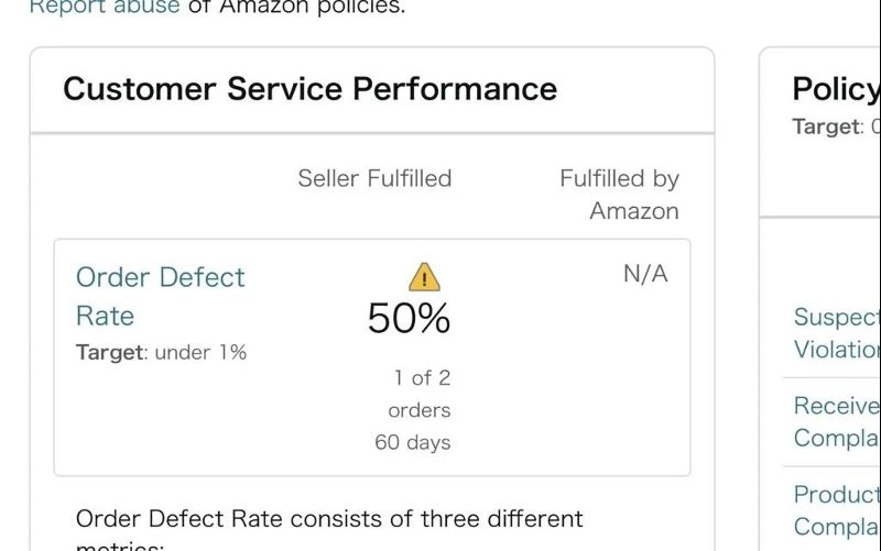 关于订单缺陷率、延迟发货率或取消率,如果你是小卖家,你的指标通常会大大超过单个缺陷订单后的指标。但是,请注意,任何卖家帐户都不会因 1-2 或 3 个缺陷而被暂停。